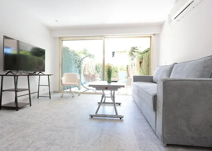 Roses Des Mers - Apt Standing 2 Prs - Clim - Parking Antibes, di 25 m², proporziona prossimità ad attrazioni turistiche come la Spiaggia di Juan-les-Pins, che si trova a circa 5 minuti a piedi.